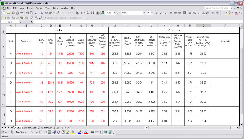 ballasted, centerboard, etc.), same type of service (racer, cruiser,